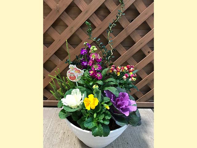 10号の鉢 お正月に向けた寄せ植えを作成します!お正月のピック付きです!※花の色、種類は変更になる場合があります。