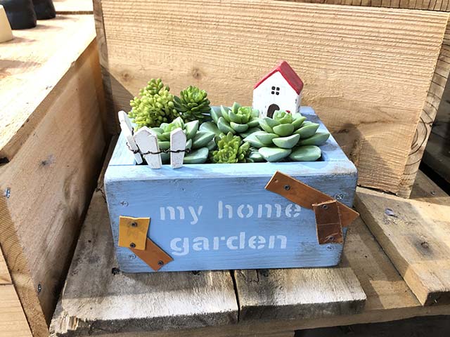 幅21×奥13×高27cm アンティーク風ペイントを体験!お家と柵のピックを作成して、ご自宅の多肉を寄せ植えして楽しんでいただけます。