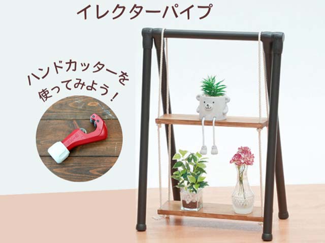 幅46×奥30×高63cm イレクターパイプをハンドカッターで切って小物を飾る棚を作ろう!くるくる回してカットしますのでお子様でも安全に参加できます♪