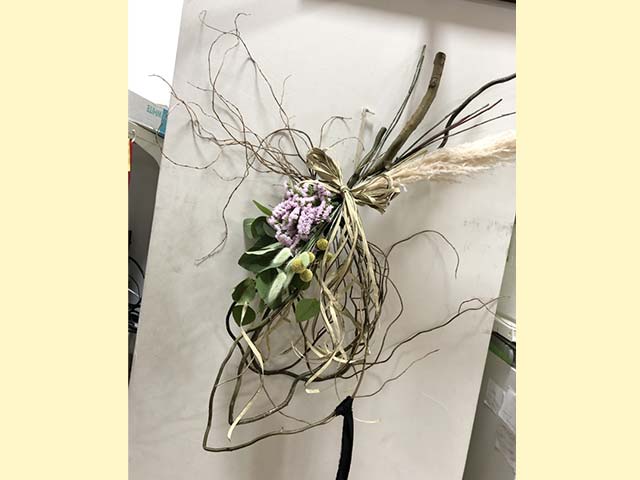 約幅30×高80cm 雲竜柳を使ってスワッグを作成します! ※雲竜柳以外の花材はその週の市場に出ているお花で作るため変更になる場合がございます。